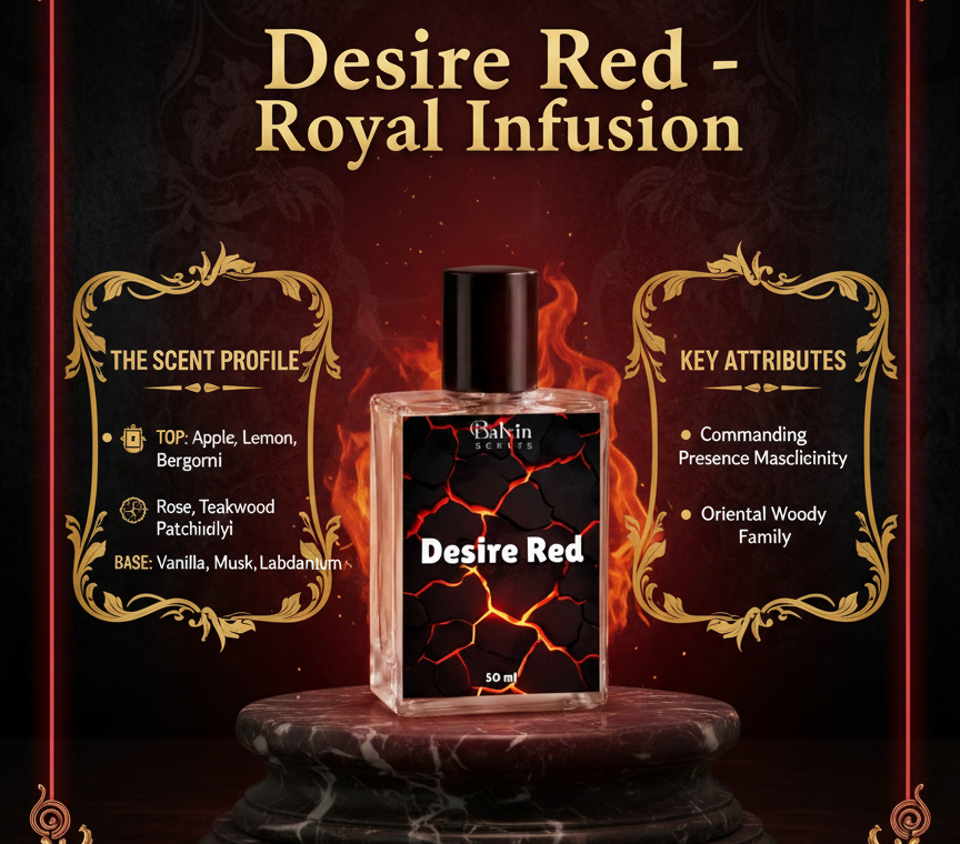 Heart Notes: The core transitions into a sophisticated blend of Rose, Teakwood, and Patchouli, adding a masculine floral touch balanced by earthy depth.